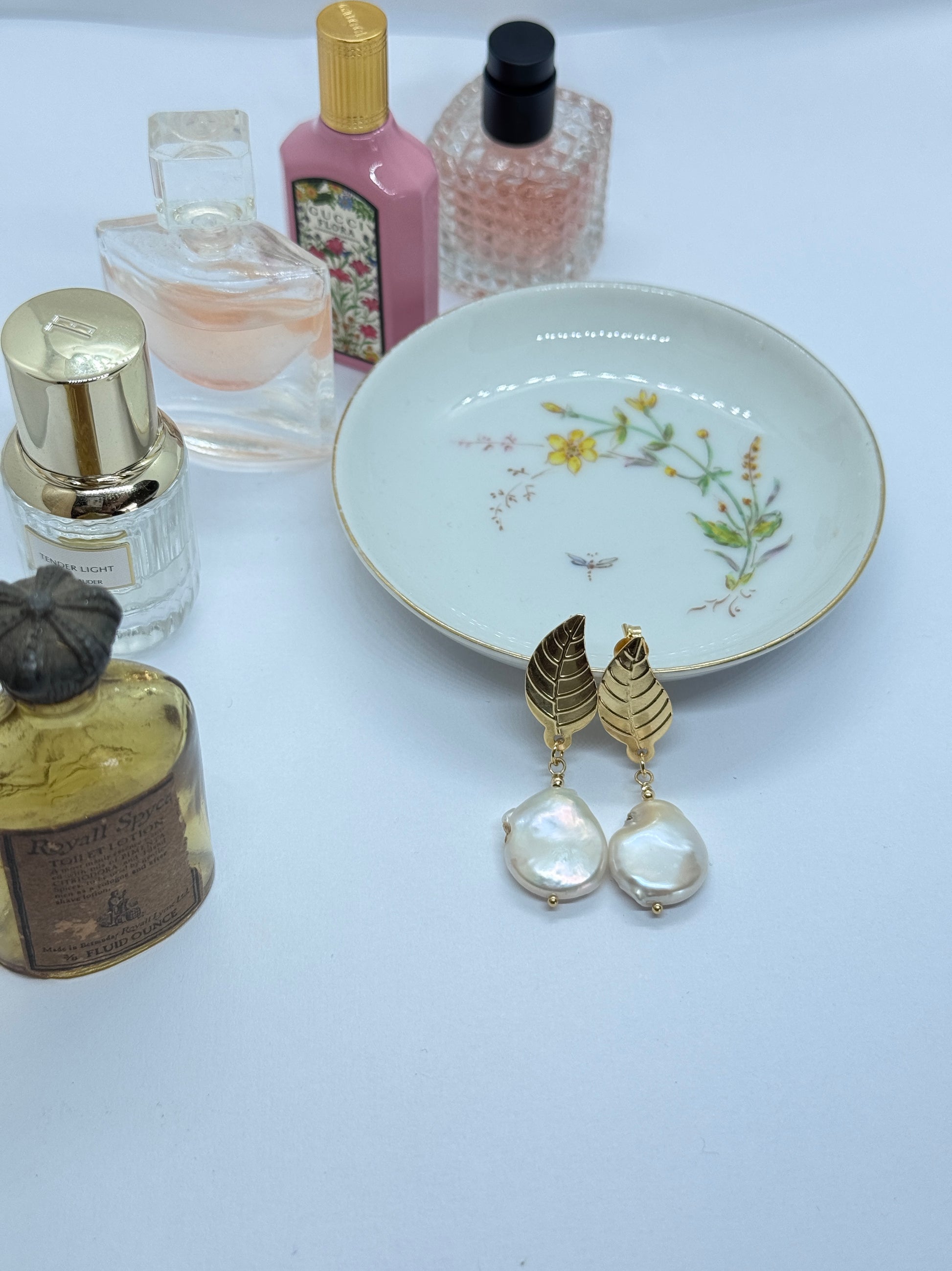 Finas terminaciones en baño de oro de 21 K, en forma de hoja, la cual aporta un brillo doré muy sofisticado y elegante.