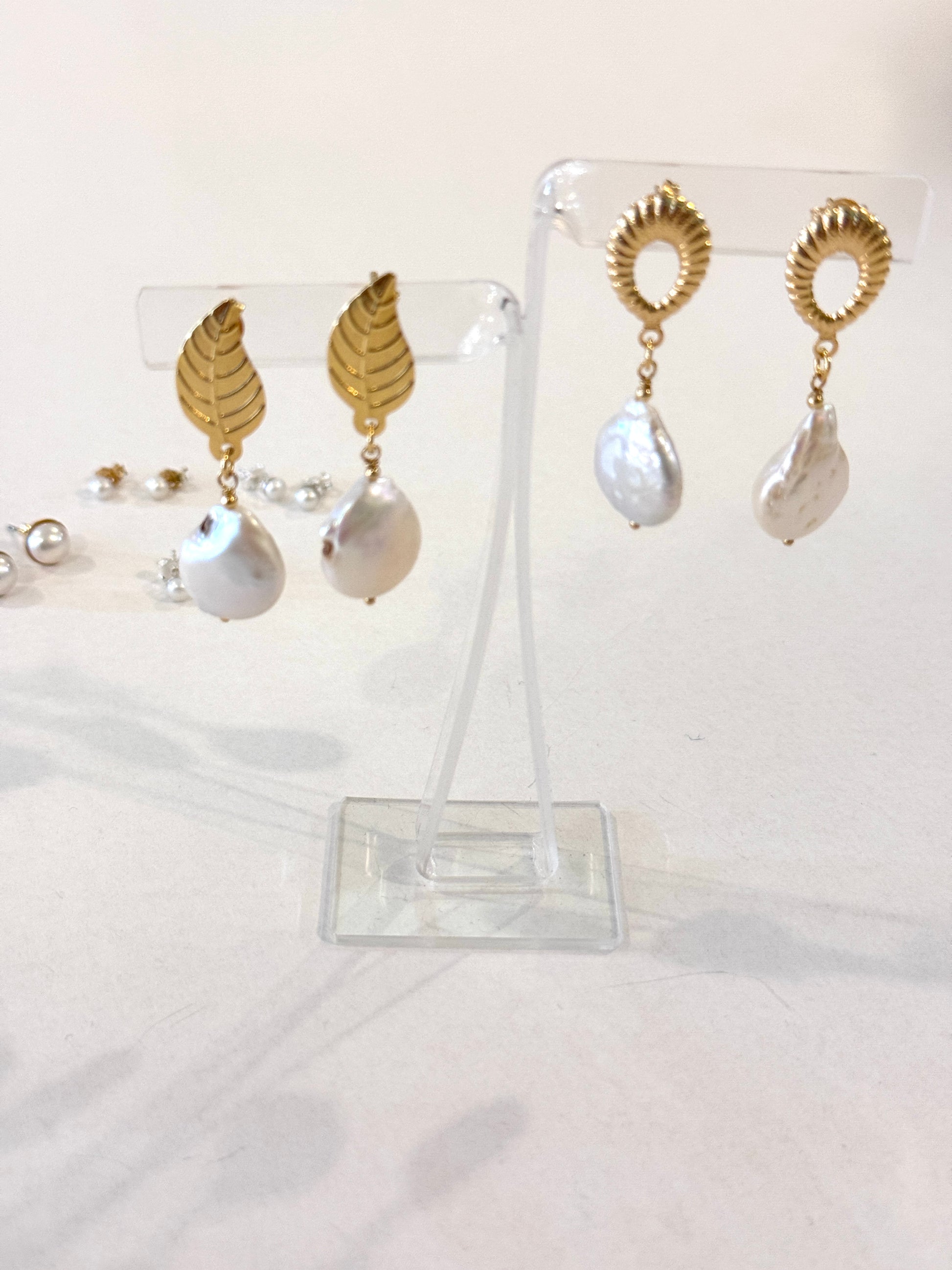 Nuestros aros de perlas de río barrocas combinan elegancia y naturaleza con una perla asimetrica natural de 2 cm aproximadamente, ovalada y achatada, que añade un toque de frescura y distinción, evocando la serenidad del agua, que significa Kö en mapundungun.
