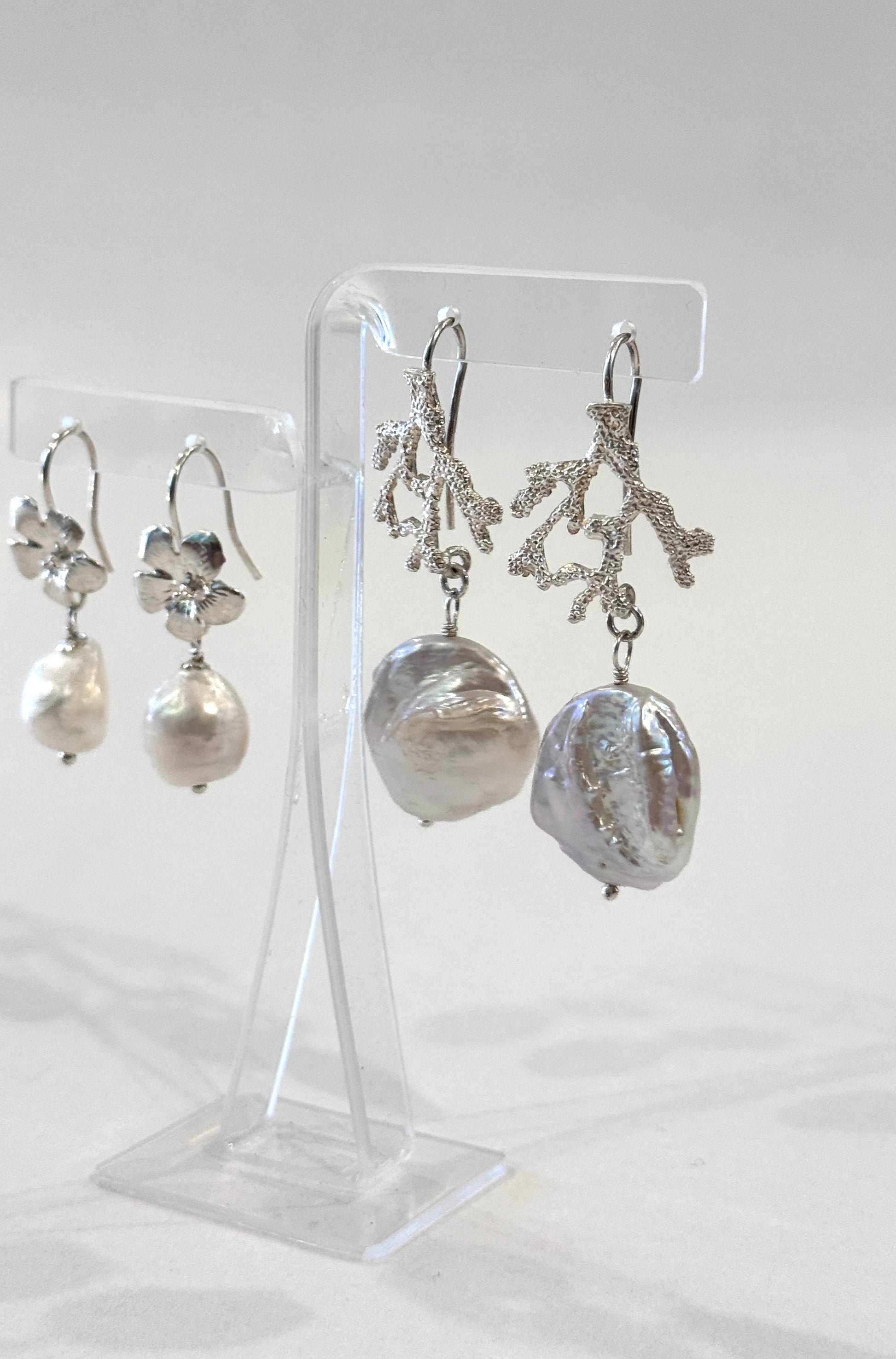Finas terminaciones y en forma de coral o flor en plata 950
