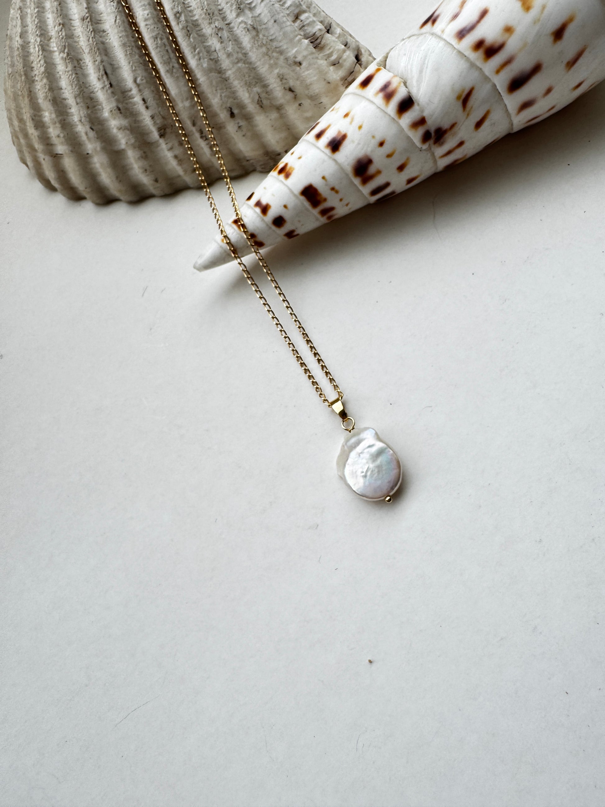 Estas elegantes cadenas en Plata 950 presentan un delicado dije con perla de río natural, de forma barroca y asimétrica, lo que hace que cada pieza sea única y especial.