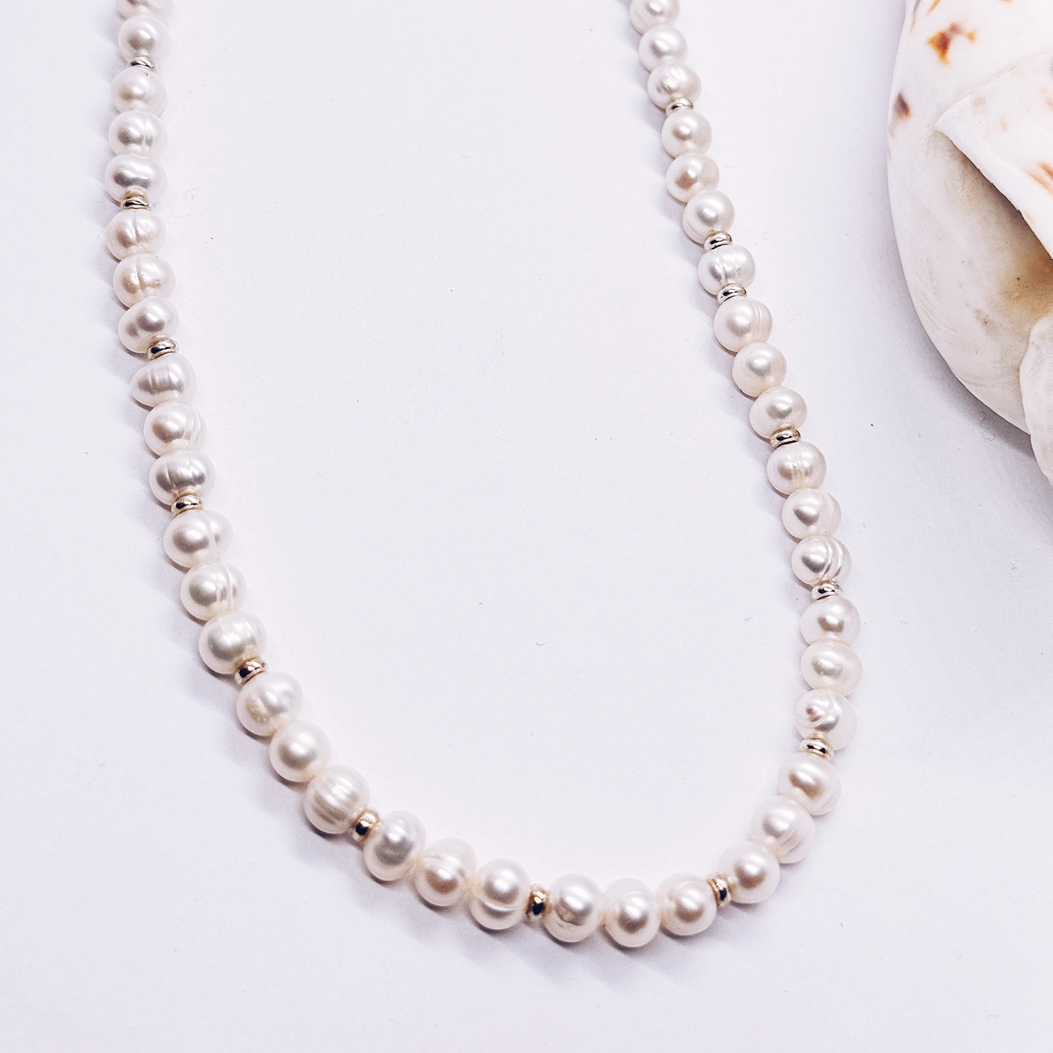 Este elegante collar combina la suave pureza de las perlas de rio, creando una pieza que irradia serenidad y estilo. Seleccionamos perlas de río naturales de 5, 6 y 8 mm ovaladas y achatas combinadas con pelotitas de plata 950. Cada collar añade finas terminaciones de plata y mide 45 cm. Tiene una cadenita extensora para ajustarlo como quieras. Úsalo con tus look diarios o también para ese día especial con vestidos de gala o fiesta, de seguro no pasarás desapercibida.