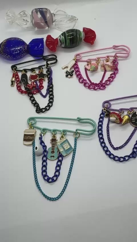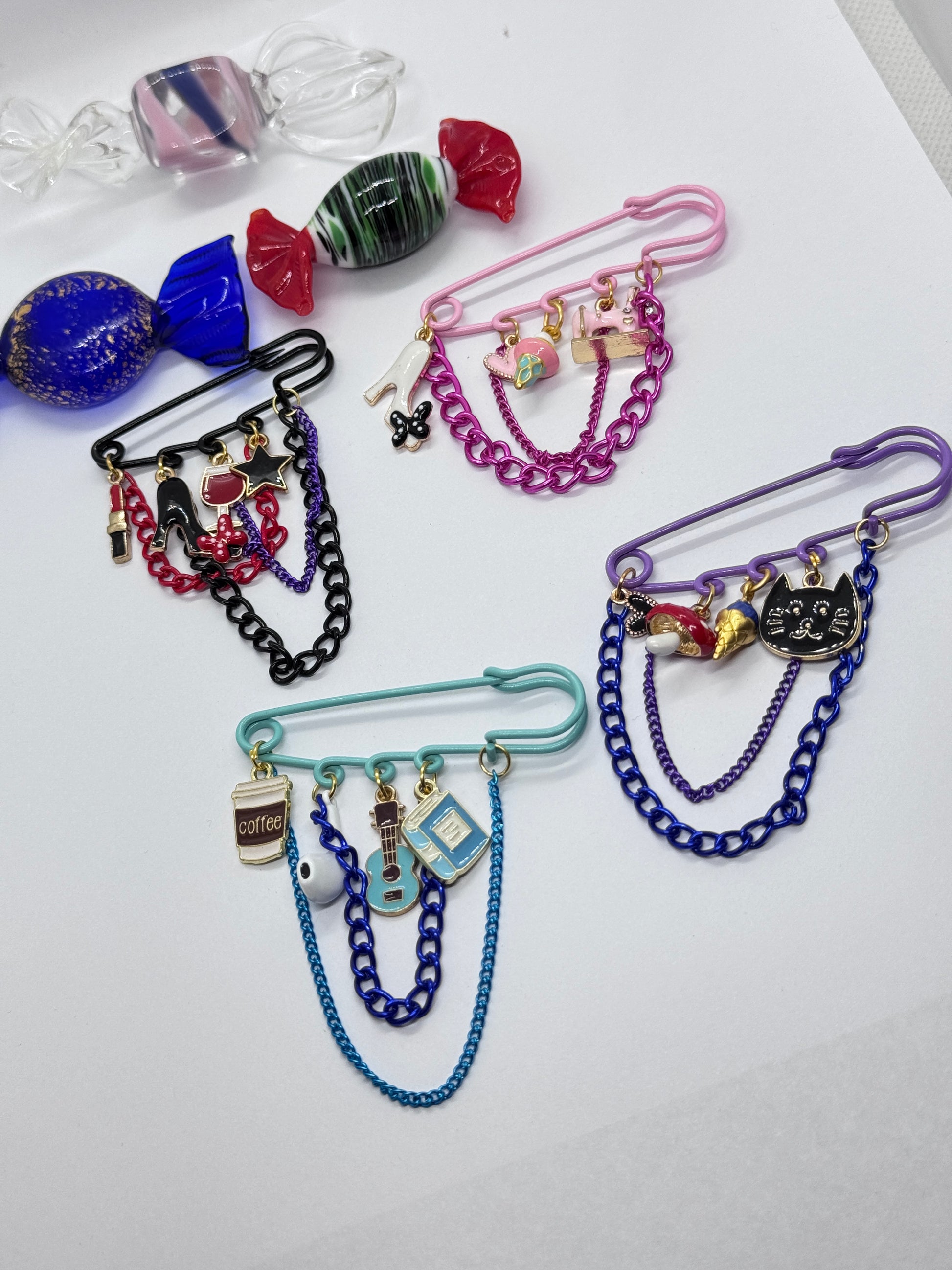 Prendedores con diseños temáticos y coloridos. ideales para lucir en tus chaquetas denim y abrigos de invierno. Cada prendedor representa tu mundo y las cosas que te gustan y te hacen feliz.