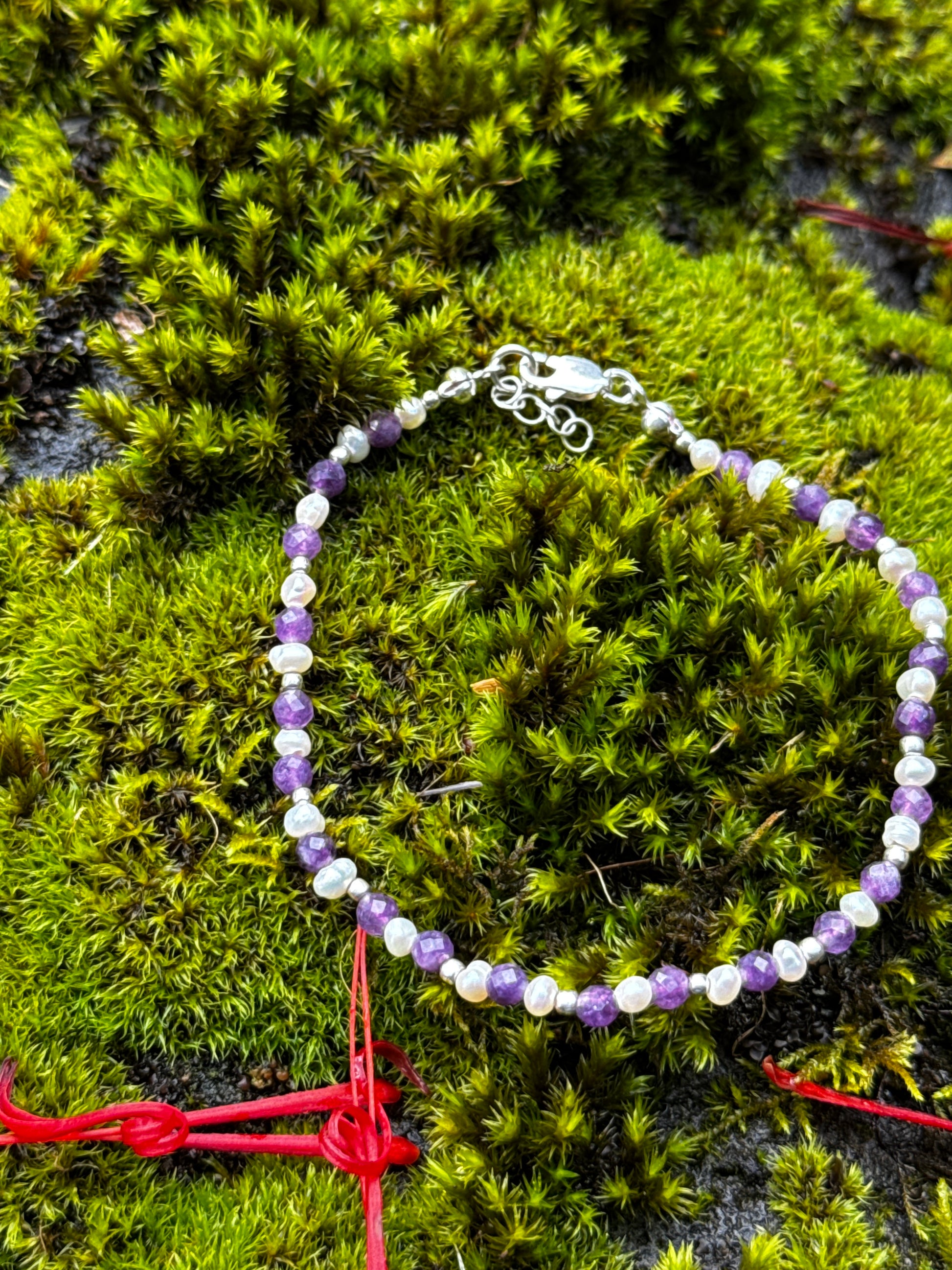 Esta delicada pulsera de amatista y pequeñas perlas de río es una alegoría de amor, armonía y suavidad. La amatista, conocida por su capacidad de transmutar la energía en amor y por su elevada vibración espiritual, aporta propiedades calmantes y sanadoras. Combinada con la sutileza natural de las perlas de río, crea una joya de belleza serena y significado profundo.